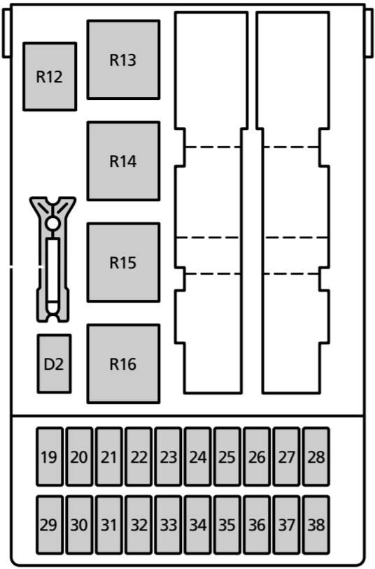 | Relé 13 | Relé | Desempañador de la ventana trasera |