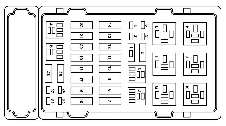 | 22 | Fusible (15) | Radio de memoria, Relé de ahorro de batería, Relé de luz de cortesía, Tablero de instrumentos, Unidad de control de video del asiento trasero. |
