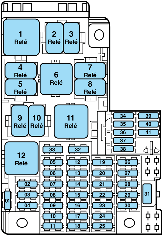 28 Fusible (40) Bomba de combustible, Relé de control electrónico del motor